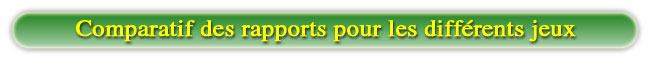 Nous avons comparé sur un mois les rapports de plusieurs jeux auprès des 5 principaux opérateurs (les résultats de Betclic et Eurosportbet, les 2 opérateurs plus branchés “sports”, sont non significatifs). Il s’agit : |